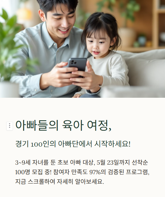 - 신청 방법: 온라인 접수 (경기도 아빠단 공식 페이지)