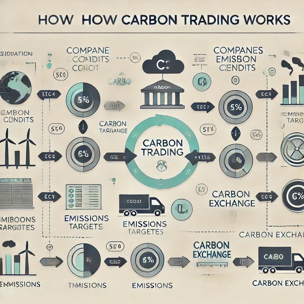 탄소 배출권 거래제는 기업 간에 배출량을 거래하여 전체 배출량을 조절하는 시스템입니다. 각 기업에 할당된 배출 허용량을 넘는 경우 다른 기업으로부터 배출권을 구매해야 하며, 배출량이 적은 기업은 남은 배출권을 판매할 수 있습니다. 🌱