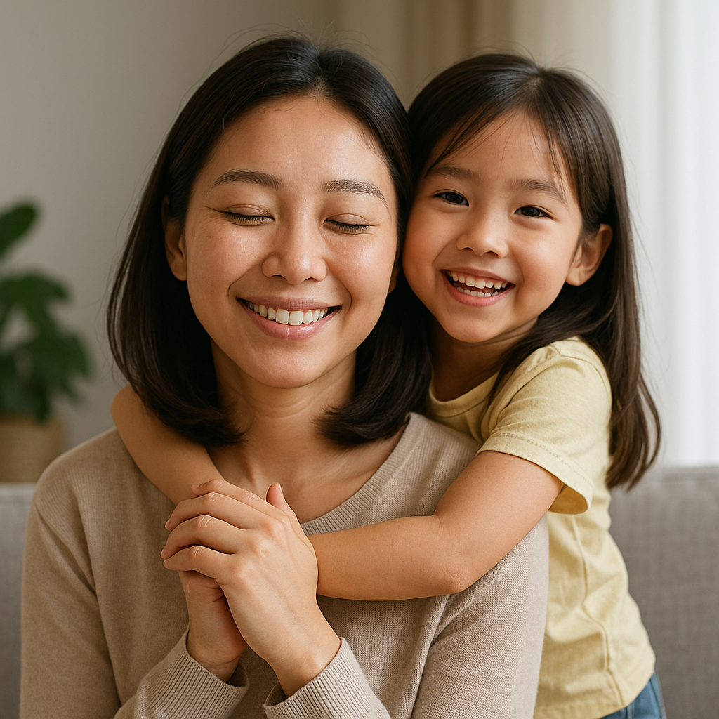 절대 죄책감 가지실 필요 없어요. 엄마도 사람이에요. 쉴 권리가 있고, 행복할 자격 있어요. 엄마가 웃으면 아이도 웃어요💖