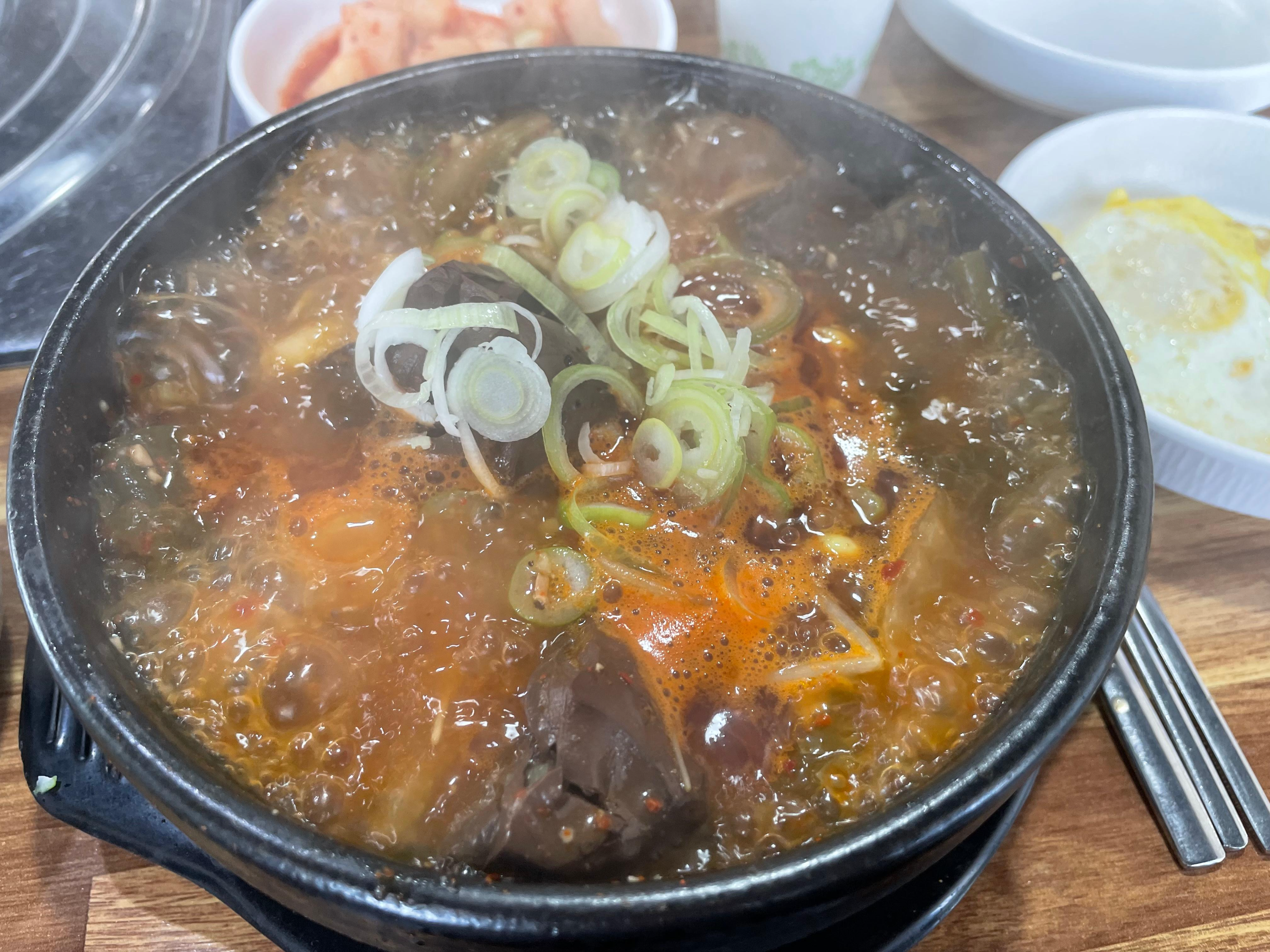 뚝배기에 펄펄 끓어오르는 선지+양+소고기 듬뿍