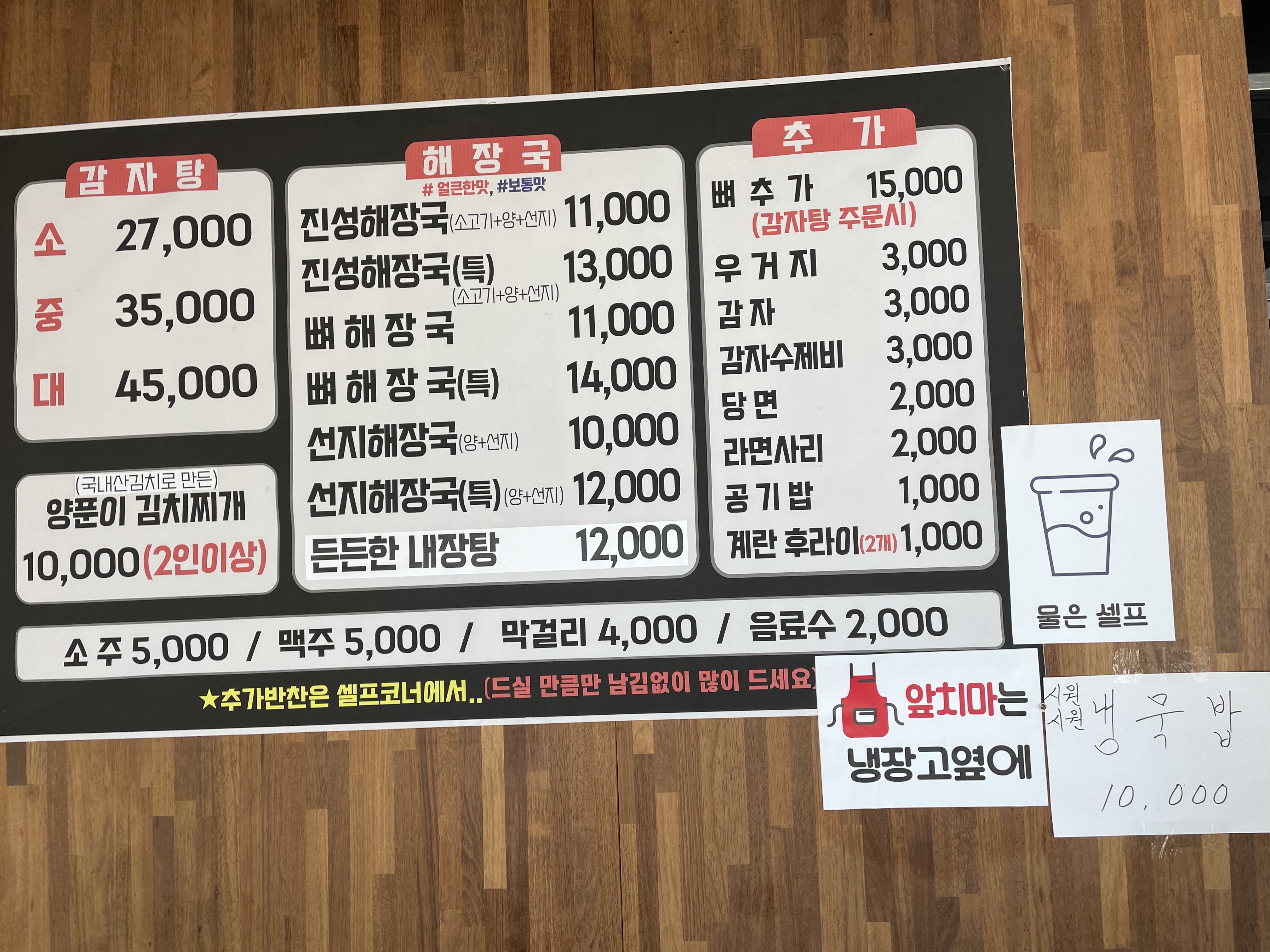 | 선지해장국 (양+선지) | 10,000원 |