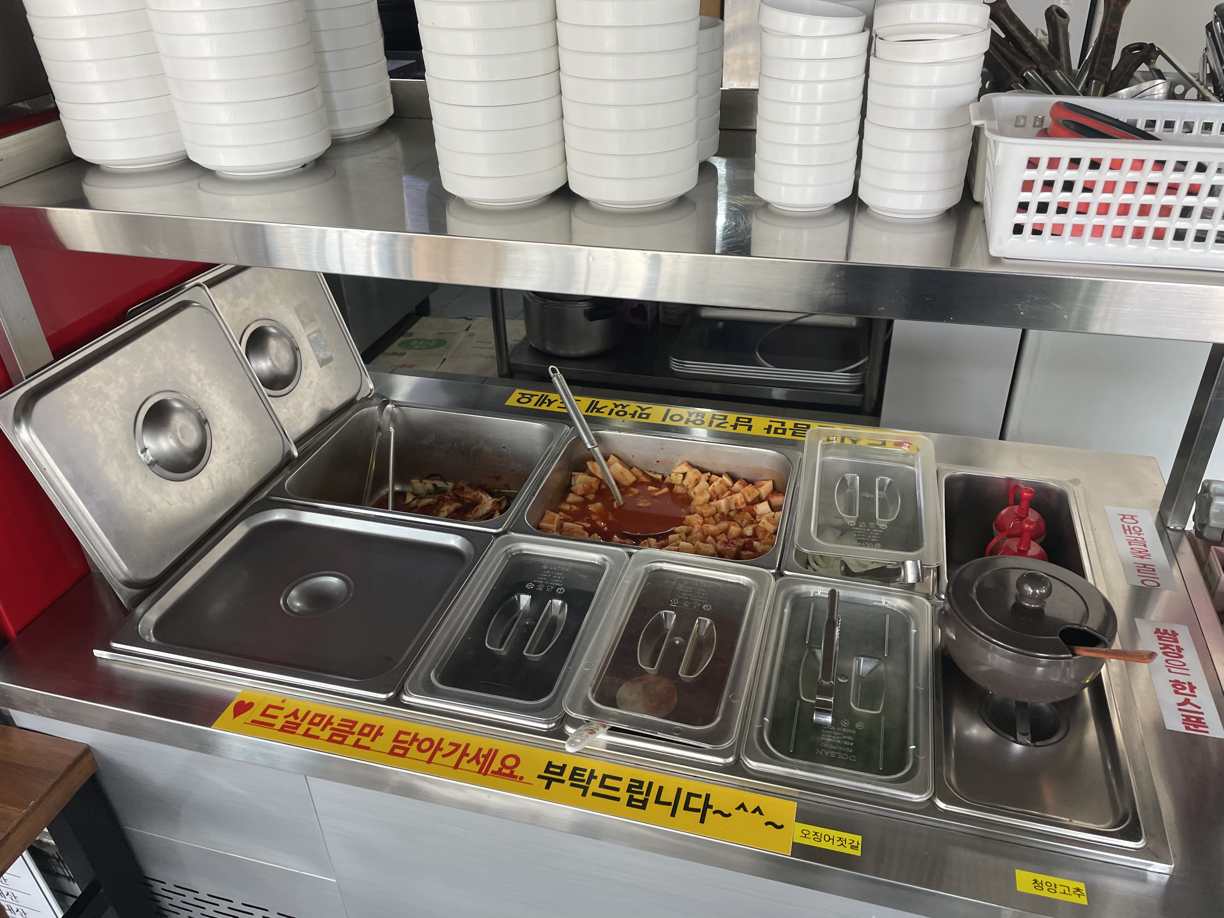 ✅ 반찬 리필은 셀프! ♥드실 만큼만 가져가세요~^^~ 라는 문구 귀엽ㅎㅎ