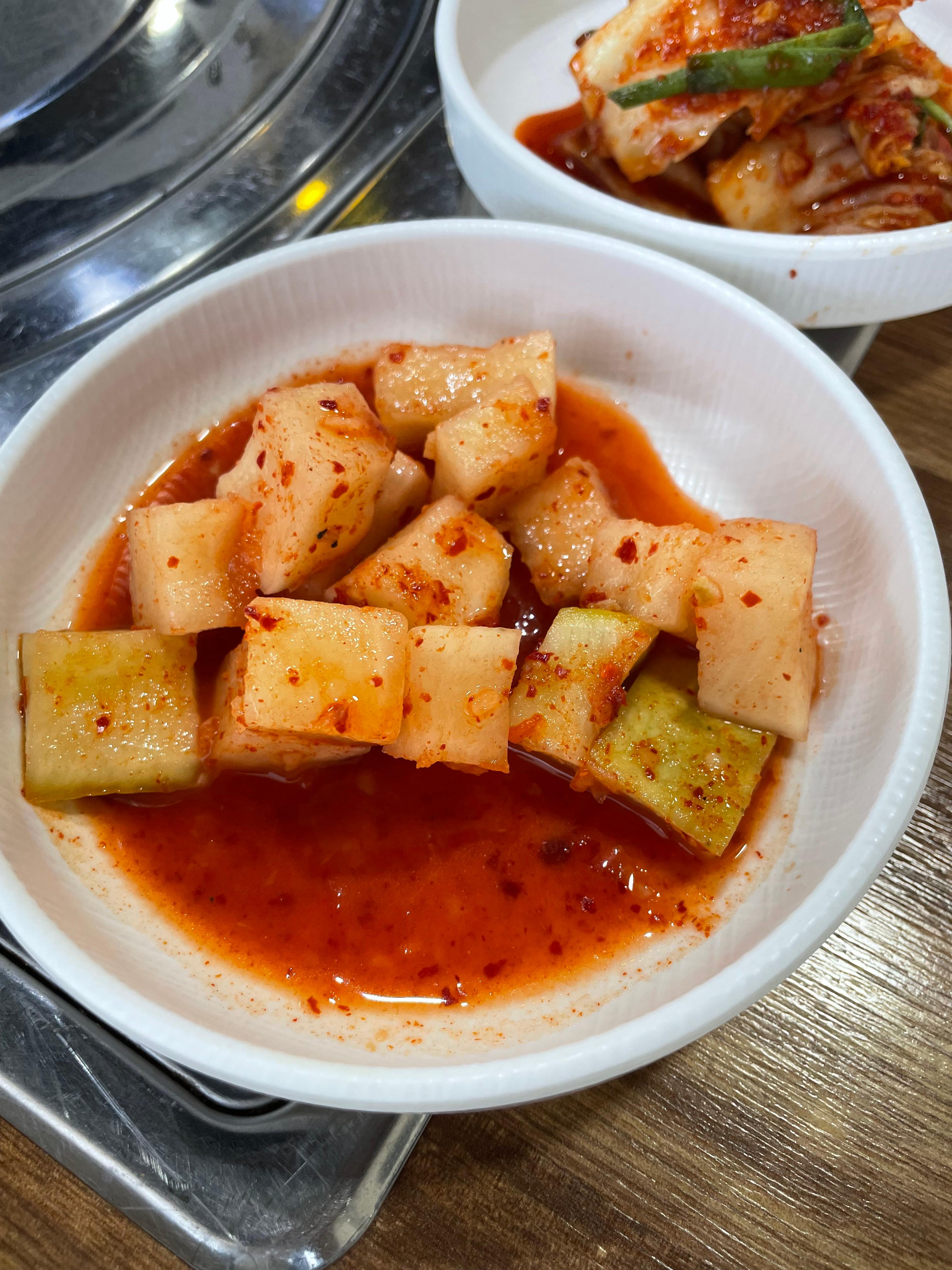 - 셀프코너 구성: 김치, 양파, 소스(쌈장 등)