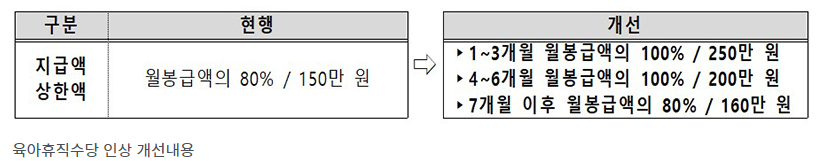 Q1: 육아휴직수당의 상한액 인상은 언제부터 적용되나요?