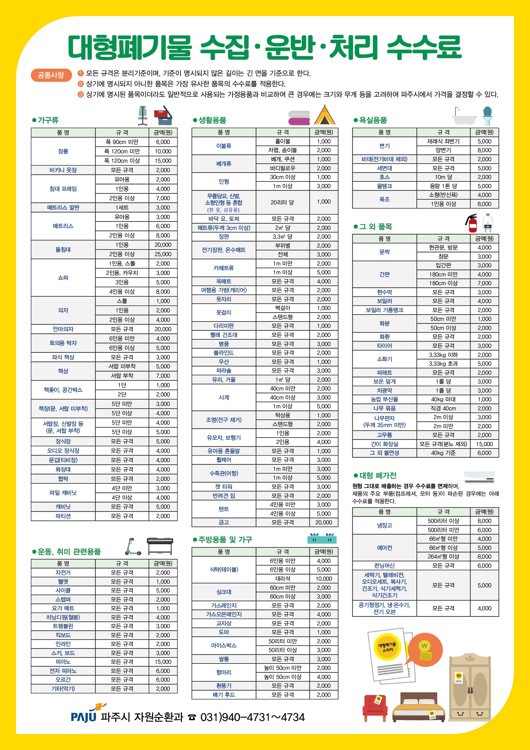 📌 파주시 대형폐기물 스티커 가격 상세정리 (가구류)