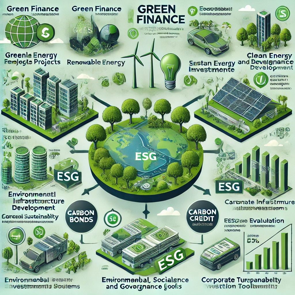 - 녹색금융: 기후변화 대응과 환경 보호를 위한 금융 상품과 서비스. 그린본드, 기후펀드, 지속가능성 연계 대출 등이 포함됨.