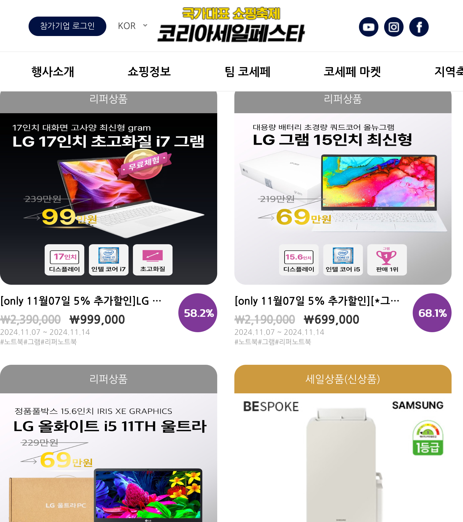 `adsense code` 2024 코리아세일페스타, 11월 9일부터 시작! 역대 최대 규모의 할인 혜택을 누려보세요! 🎉