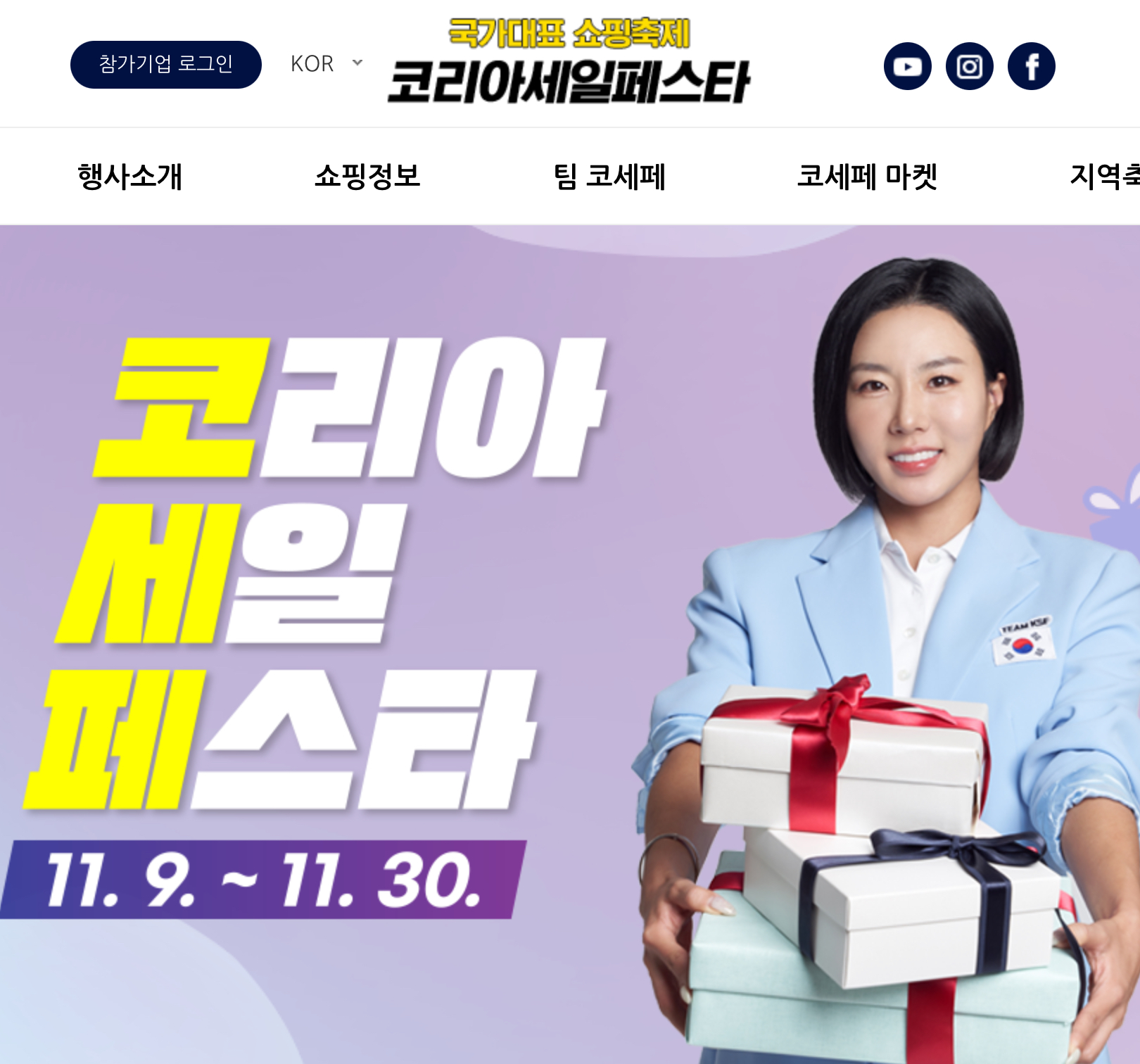 2024년 11월 9일부터 30일까지 국내 최대 쇼핑 축제 ‘코리아세일페스타(Korea Sale FESTA)’가 역대 최대 규모로 진행됩니다. 올해는 총 2,600개 이상의 유통·제조·서비스 기업이 참여해 다양한 할인 혜택과 특별 이벤트를 준비하여 소비자들에게 알찬 쇼핑 기회를 제공합니다. 코세페 공식 홈페이지에서는 더 자세한 행사 내용과 참여 기업 정보를 확인할 수 있습니다.